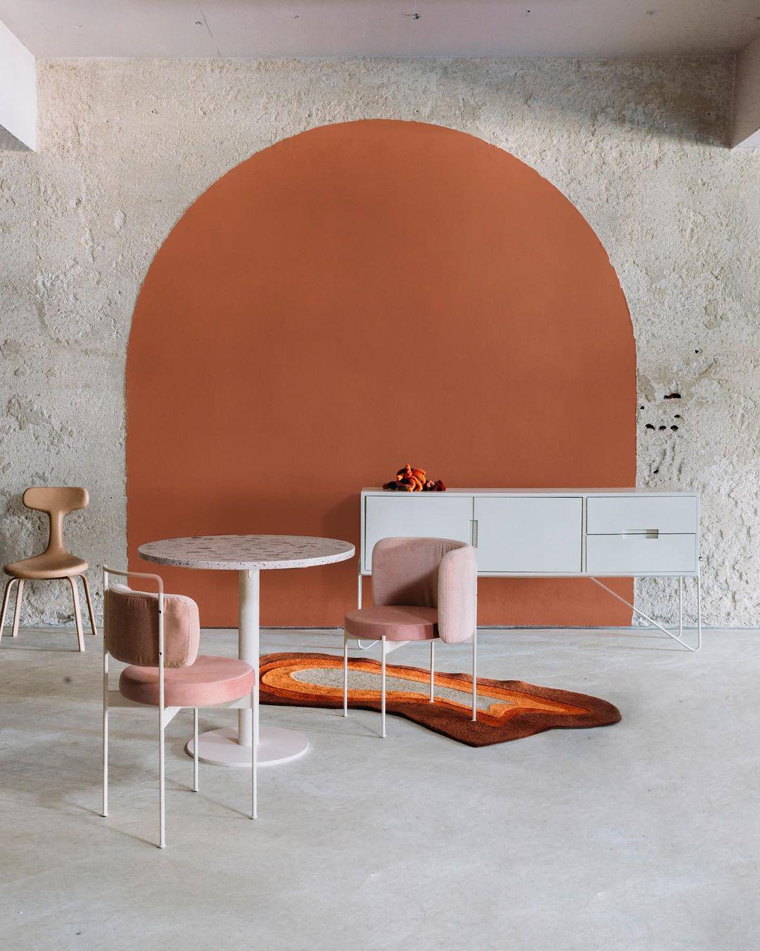 “Se for pensar, todos moramos dentro de caixas. Quando pinto uma bola atrás da cama, estou criando praticamente um lugar de descanso para o meu cérebro. Ao fazer um arco na parede, acabo deixando o espaço mais amigável”, avalia. Para Michell, as paredes bicolores também ajudam trazer afetividade para os espaços. “São meio vintage, porque lembram a casa das nossas avós, a escola que estudamos na infância… É quase um resgate da nossa própria história, nos fazendo sentir mais acalentados dentro de casa.”